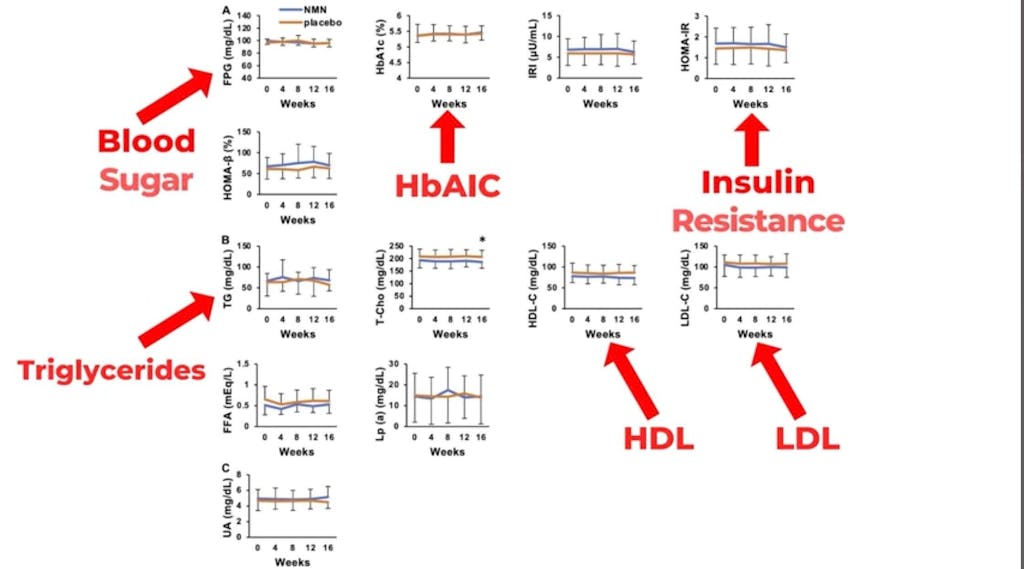 [6] July 2023: 2000mg NMN, N=30, >45 years, Single-center, Randomized, Placebo-controlled, Double-Blind